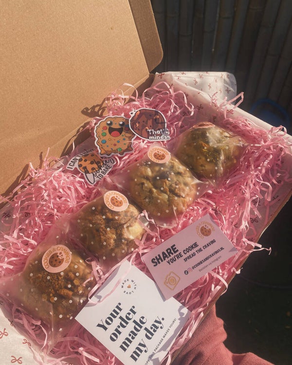 Deze heerlijke koeken hebben een perfecte bite: Crispy van buiten en chewy van binnen. Vergrijgbaar in wel 9 smaken!